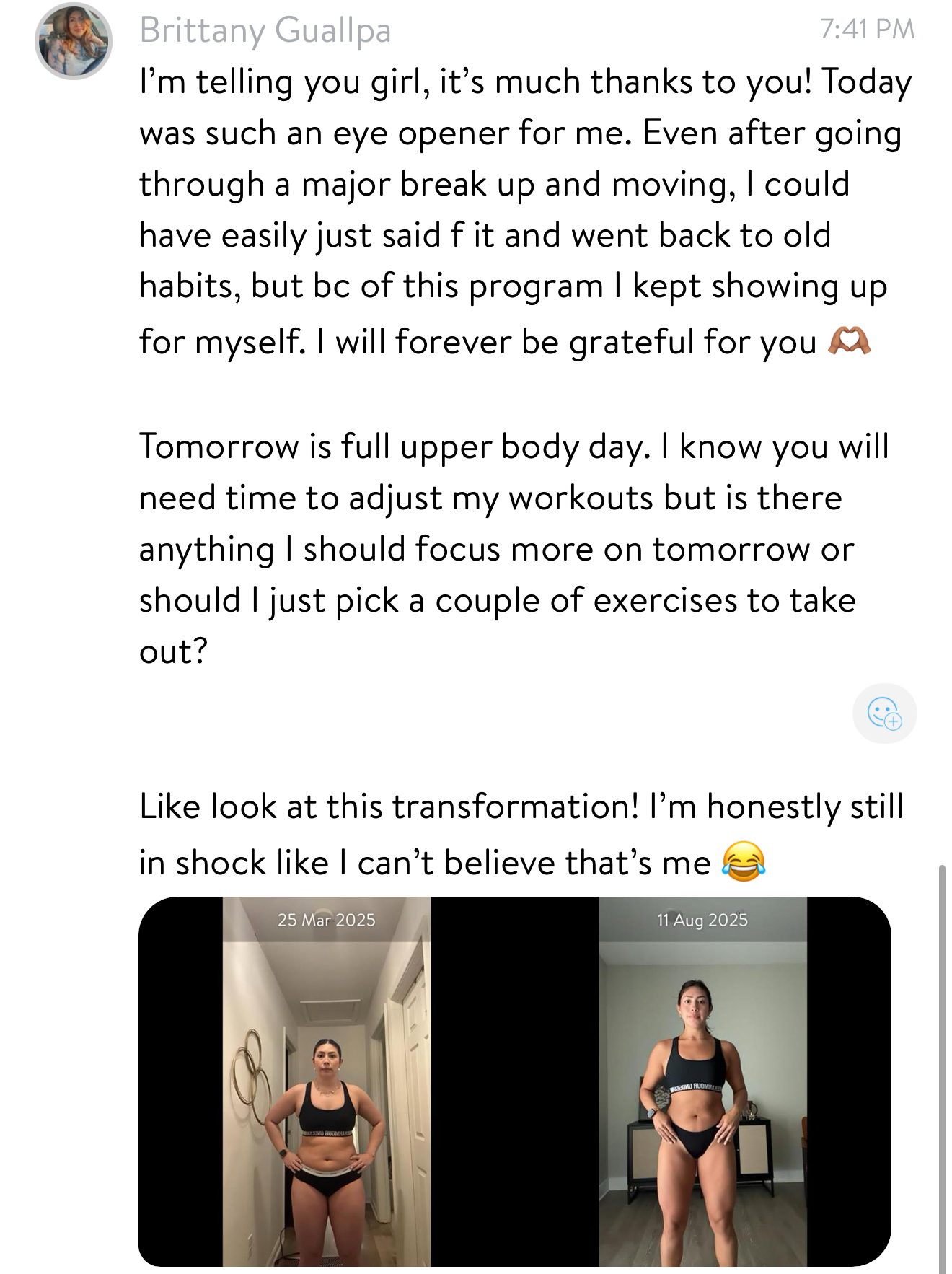 I have helped over 10,000 women transform their lives and fitness through my online coaching and programs.